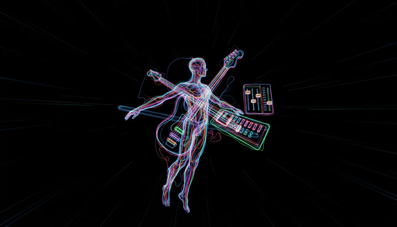 El músico en trance: No piensa en las notas. Sus dedos se mueven por memoria muscular, el sonido retumba en su pecho y el sudor cae por su frente sin que le moleste. Está fusionado con la acción.