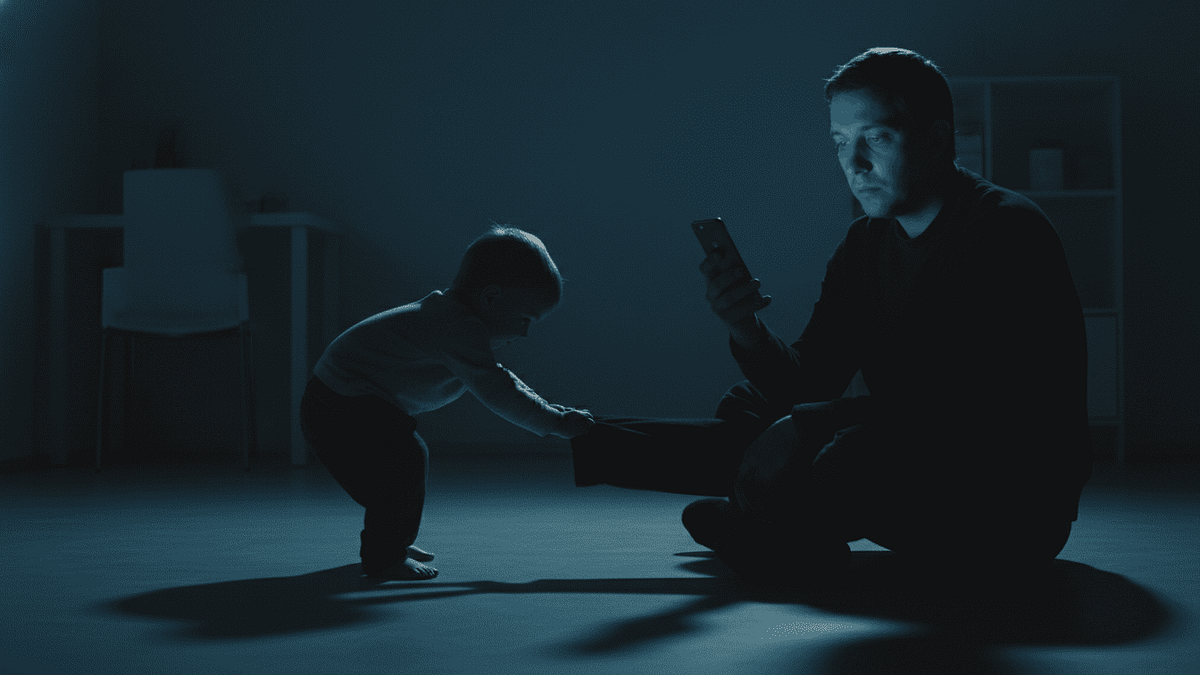 Cuando estás con tu hijo pero tu mente está en el correo del trabajo o en los likes de Instagram, sufres de atención parcial continua. Estás físicamente en el parque, pero tu mente está en la nube. Tu hijo lo nota. Los niños son detectores de mentiras biológicos. Perciben la incongruencia entre tu presencia física y tu ausencia mental.